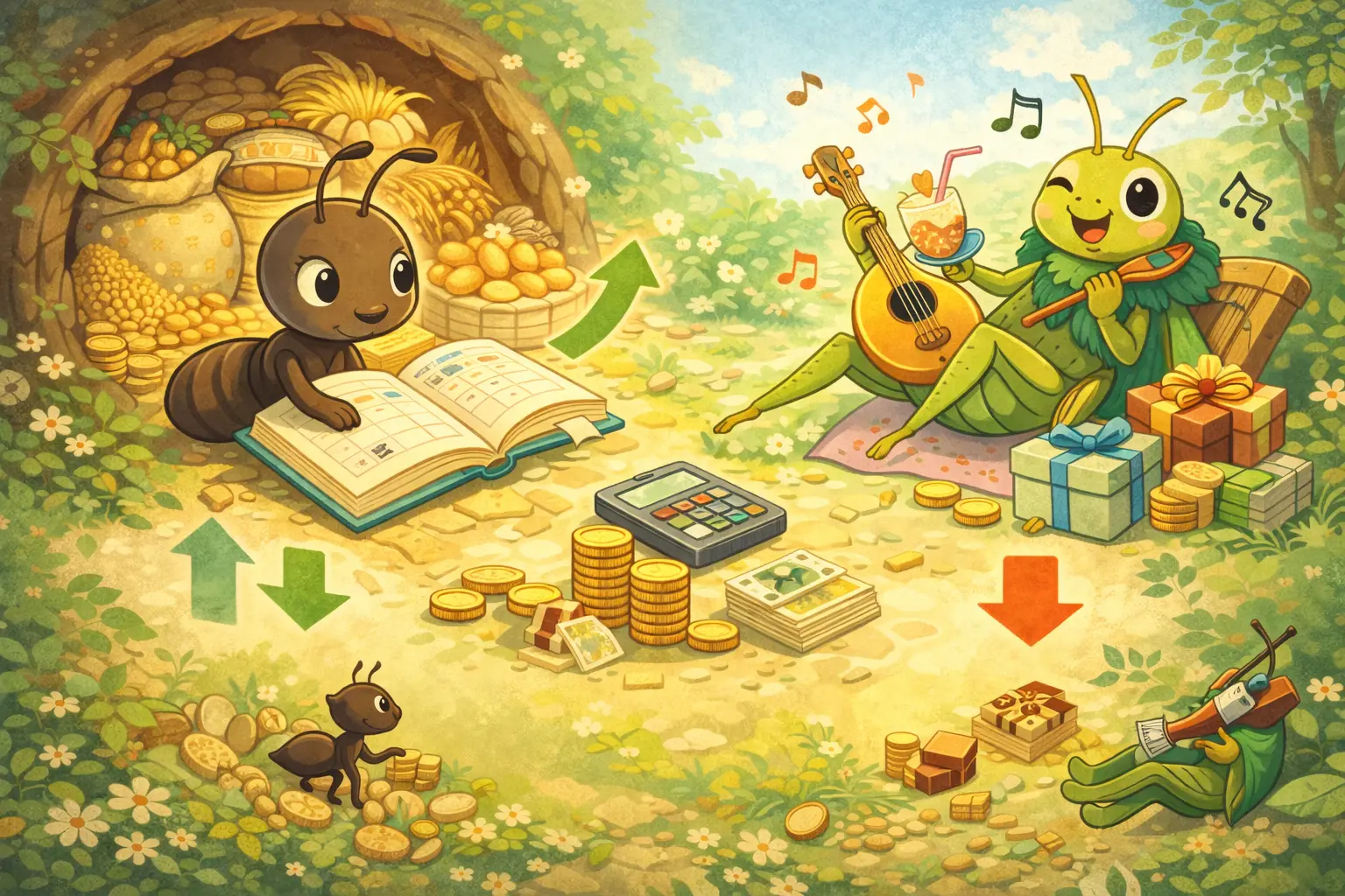 【簿記3級童話】アリとキリギリスの利益剰余金〜備えと浪費の簿記的ちがい〜